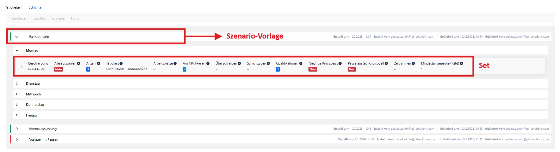 Inaktive Szenario-Vorlagen sind rot markiert und stehen in der Szenarienplanung der operativen Einsatzplanung nicht zur Verfügung.