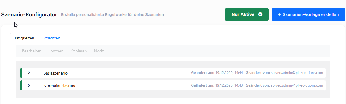 Ein Szenarien-Konfigurator für Schichten ist geplant, steht derzeit jedoch noch nicht zur Verfügung.